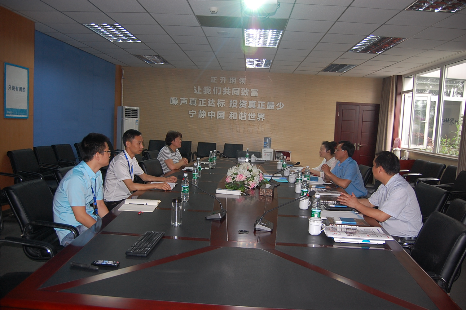 考察組先后考察了公司展廳、實驗室,詳細了解了公司的科普展報布置情況、科普內容設計、點位安排等事項。考察組尤其對公司混響室、消聲器動態測試平臺的體驗效果和科普效果給予了充分肯定。會議室的面對面溝通交流中,考察組分別聽取了副總經理賈荷香對噪聲科普教育基地未來的規劃、設計工程師李力克就公司戶外趣味噪聲科普教育基地的規劃。