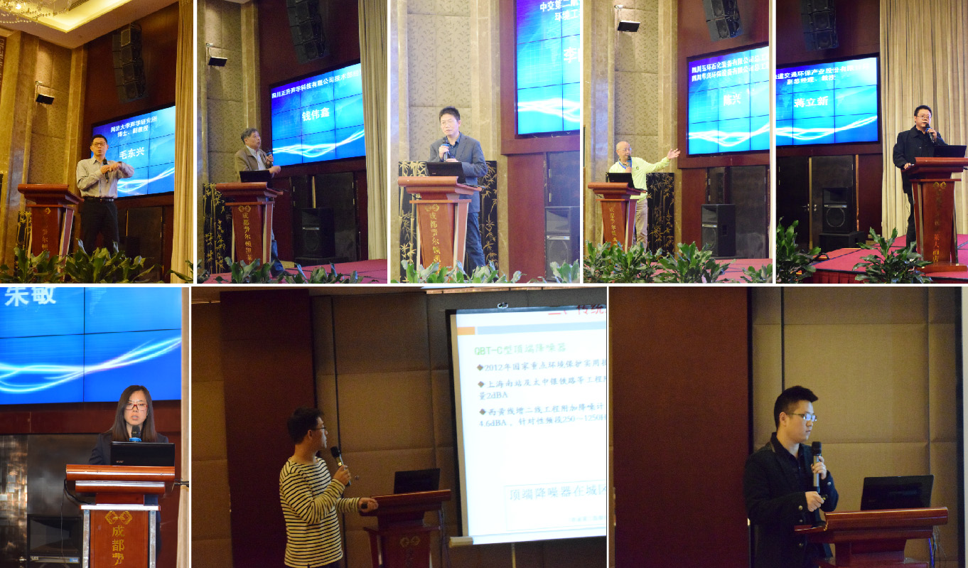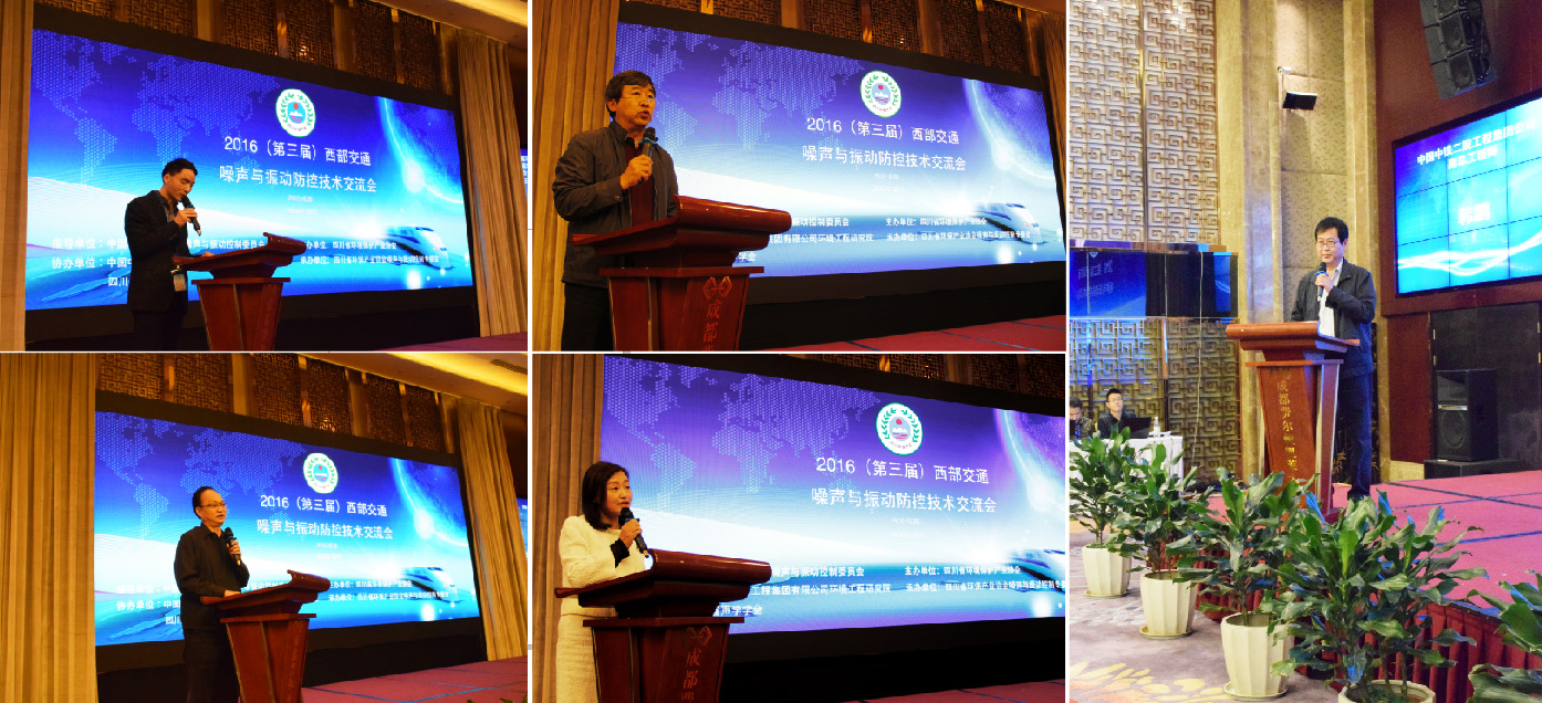在現場互動交流中,來自國內降噪與振動領域的十六位權威專家分別進行了分享發言。其中,中國環保產業協會噪聲與振動控制委員會秘書長邵斌、西南交通大學教授王其昌、四川聯合環保裝備產業技術研究院兼職副院長沈加曙、同濟大學聲學研究所毛東興教授、鐵三院國863課題組主任劉冀釗、中船第九設計研究院研究員呂玉恒、中國科學院聲學所研究員劉碧龍、中鐵二院工程集團有限責任公司環境研究院高級工程師徐志勝、四川正升技術部經理錢偉鑫等業內知名專家學者,分別分享了“城市軌道交通減振降噪技術與實踐、現代鐵路軌道減振降噪技術對策與實踐、聚合微粒新型吸聲材料、城市軌道交通浮置式減振措施的減振降噪效果、高速鐵路噪聲控制、道路聲屏障、聚合微粒聲學產品及應用、城市軌道交通高架段聲預測研究”等科研成果,贏得現場陣陣掌聲。