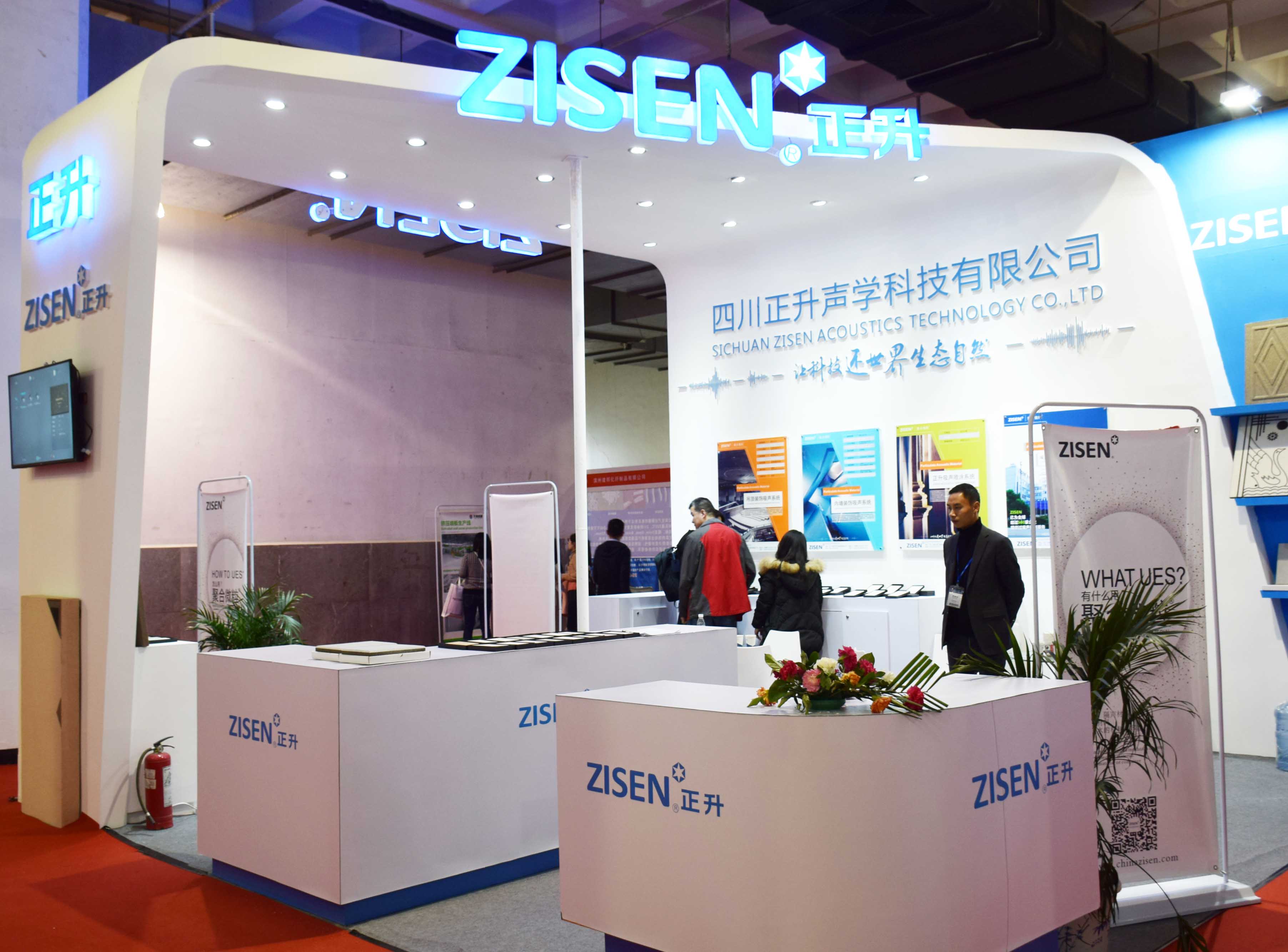 根據這次展會的主題,正升聲學科技有限公司以聚合微粒藝術吸聲材料為主打產品,以創新工藝為熱點,以聚合微粒材料技術為要點,以健康環保、隔音降噪為主題進行宣傳展示。