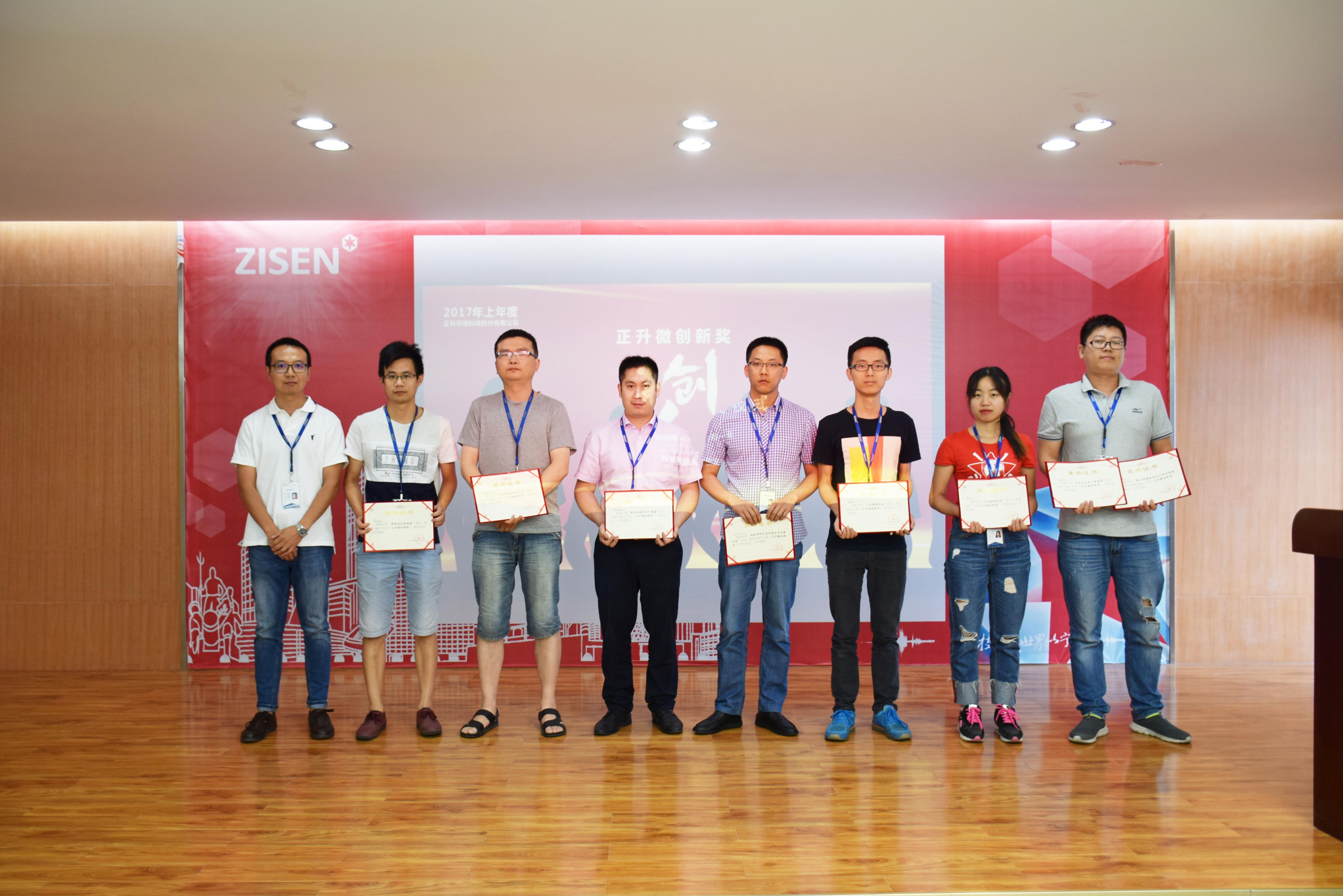 分享課結束后,公司進行了2017年上年度“正升微創新獎”頒獎儀式,由創新學院院長張曉杰分別為張奎、劉力、楊秀伍、何映氚、賀廷江、何青松等7位獲獎代表頒發獲獎證書及獎金。