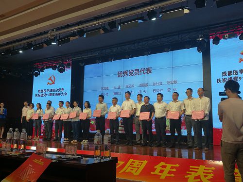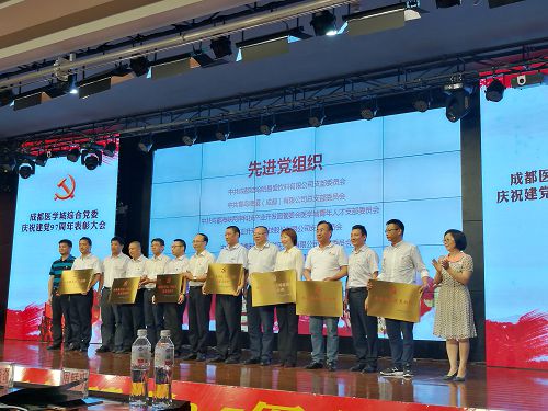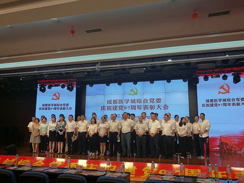 6月26日,成都醫學城綜合黨委慶祝建黨97周年表彰大會在成都市溫江區隆重舉行。公司黨支部、黨員沈加曙分別榮獲成都醫學城先進黨組織、優秀共產黨員榮譽稱號。公司黨支部書記楊煜同來自園區的6家先進黨組織代表一起,在表彰大會上授牌。