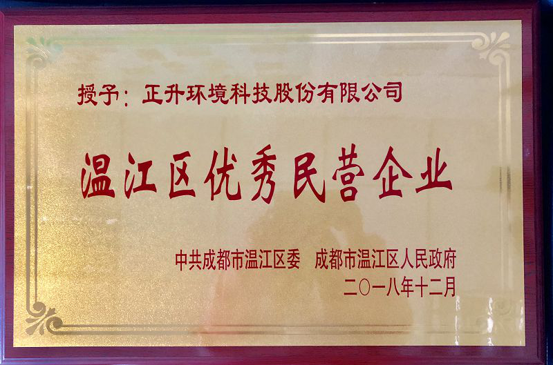 2018年12月28日上午,從溫江區民營經濟健康發展大會現場傳來喜訊,正升環境科技股份有限公司作為溫江區優秀民營企業,在現場予以隆重表彰。