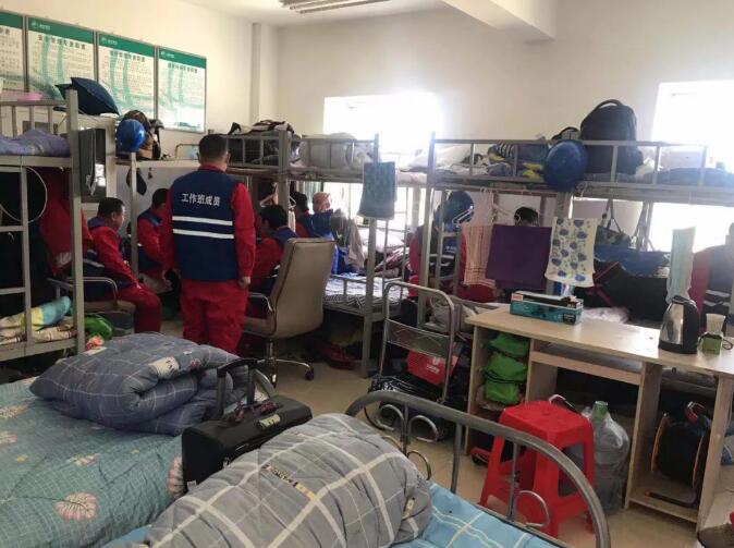 同時(shí)為了節(jié)約往返項(xiàng)目現(xiàn)場(chǎng)與住宿地點(diǎn)的時(shí)間,項(xiàng)目團(tuán)隊(duì)在現(xiàn)場(chǎng)附近駐扎,住宿地點(diǎn)也相應(yīng)偏僻,生活條件十分艱苦。項(xiàng)目團(tuán)隊(duì)的所有成員,無(wú)論是管理人員還是工人師傅都住在一起,睡大通鋪。項(xiàng)目總負(fù)責(zé)人張軍說(shuō):“條件艱苦并不可怕,但是我們團(tuán)隊(duì)的心一定要在一起。”