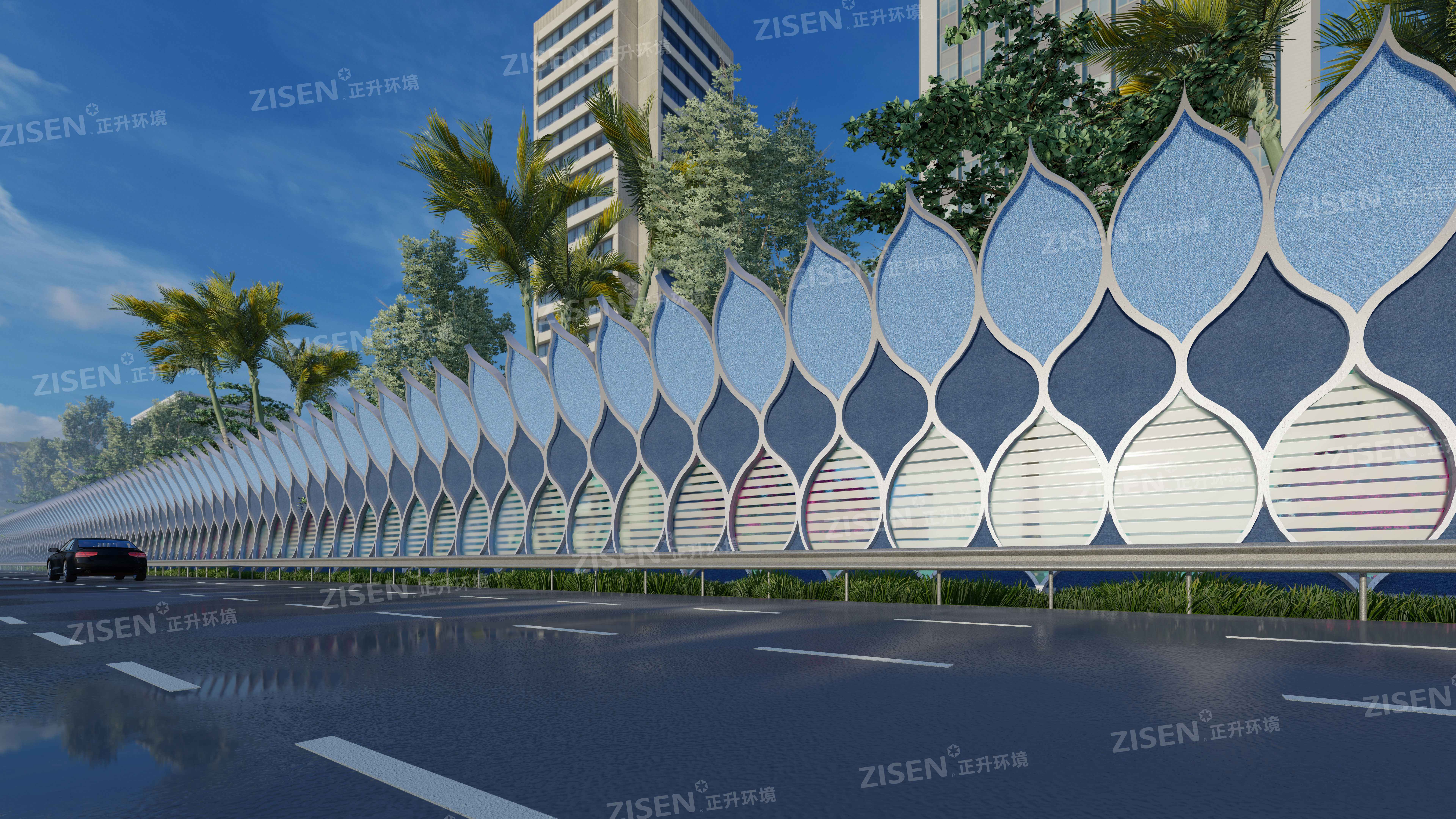 我們渴望從視覺上弱化聲屏障的固有形象,從聽覺上凈化交通噪聲的叨擾,將聲屏障和諧自然地融入環境,安靜和諧不突兀。